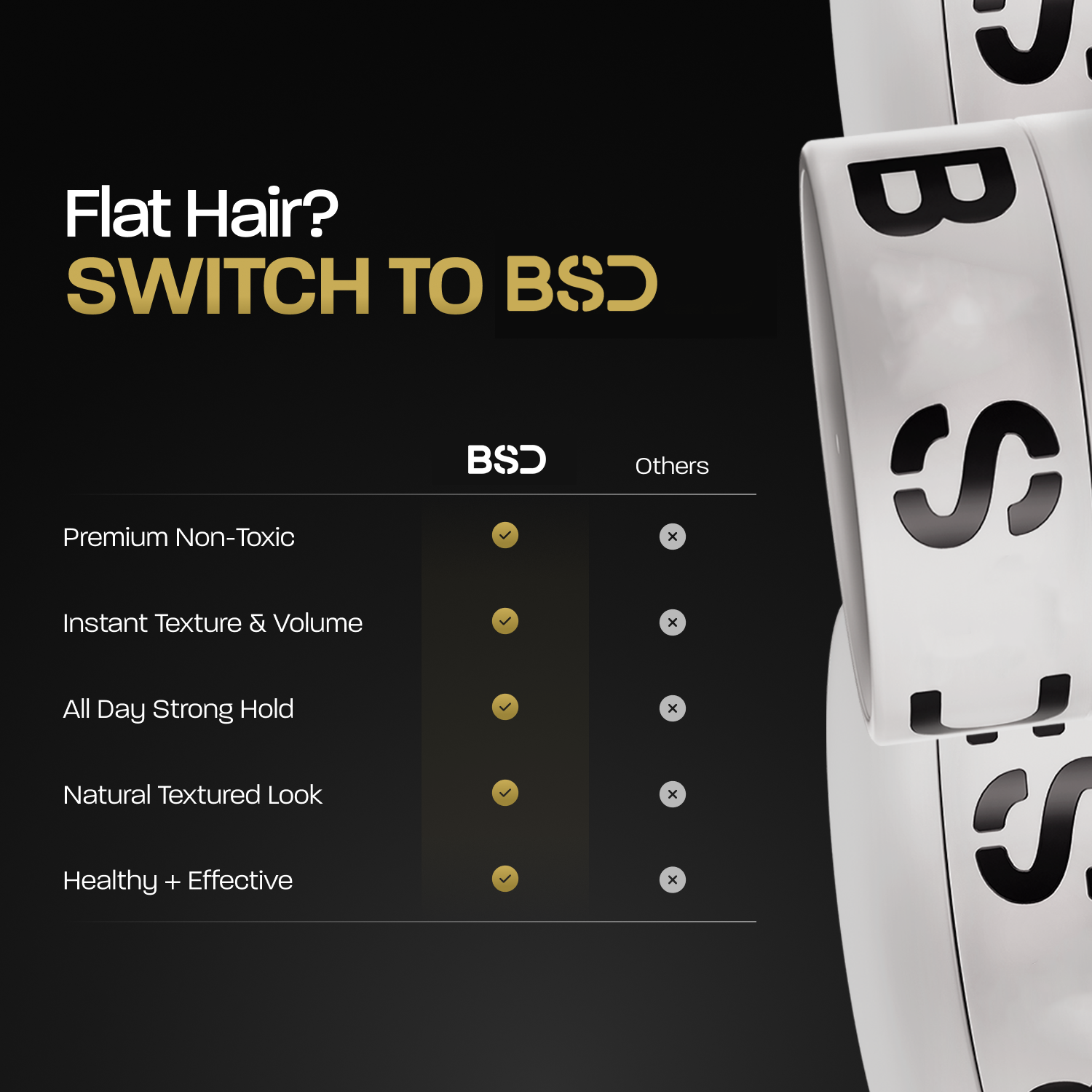 Unlike traditional styling products that can leave your hair feeling overly stiff or greasy, BSD Texture Powder offers a lightweight, matte finish that adds instant volume and texture.